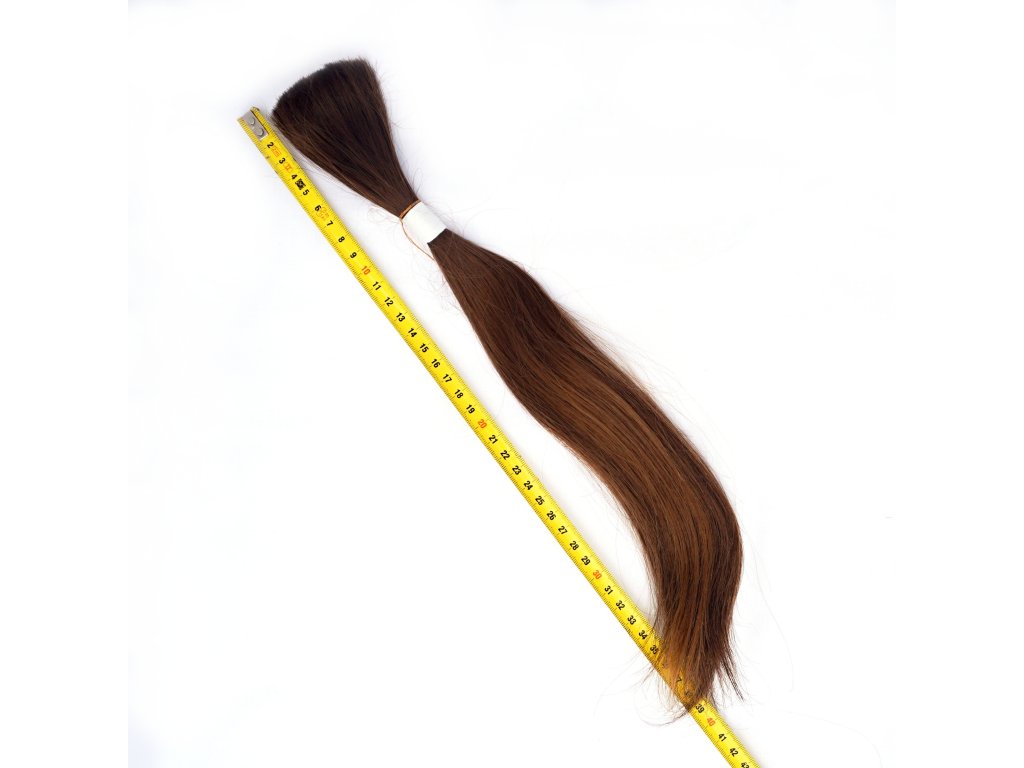 Evropské vlasy k prodloužení v copu – hnědé, pravé, 38 cm, 110 g