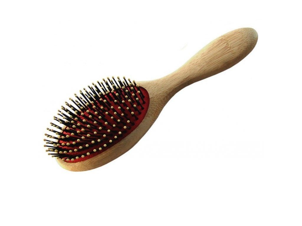Rozčesávací bambusový kartáč – kovové ostny s kuličkou pro šetrné česání