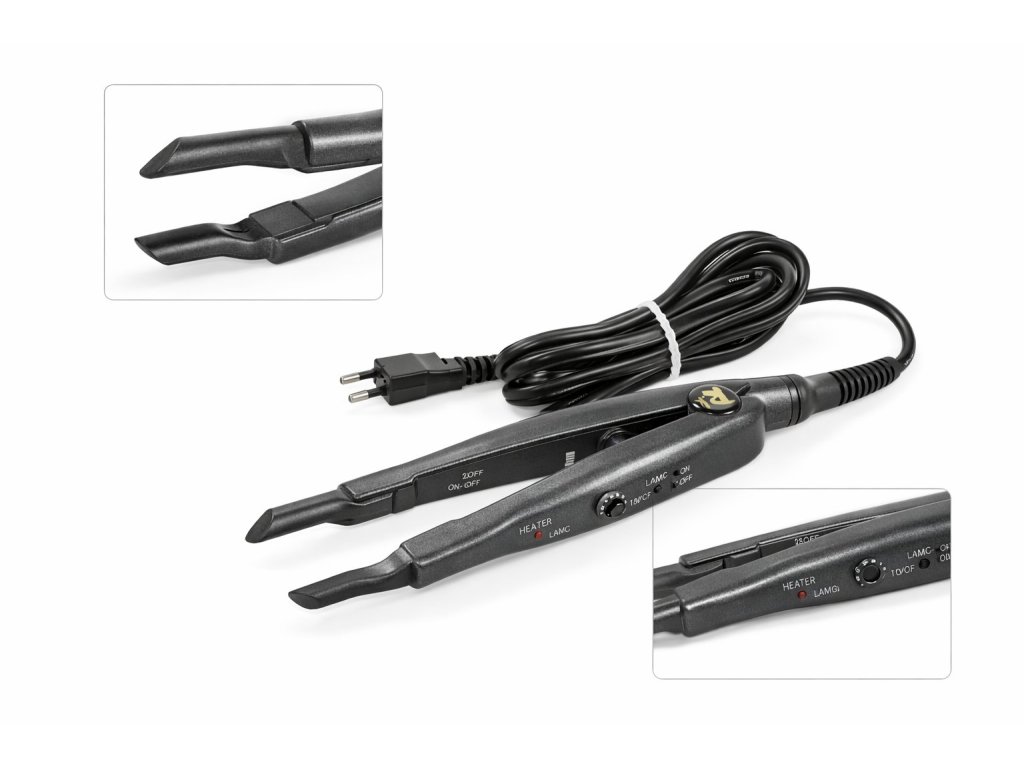 Profesionální tavicí kleště na keratin určené pro aplikaci vlasových pramenů při prodlužování vlasů. Lehká konstrukce a ergonomický tvar zajišťují pohodlnou práci i při delším používání. Vhodné pro všechny typy keratinu s možností regulace teploty.