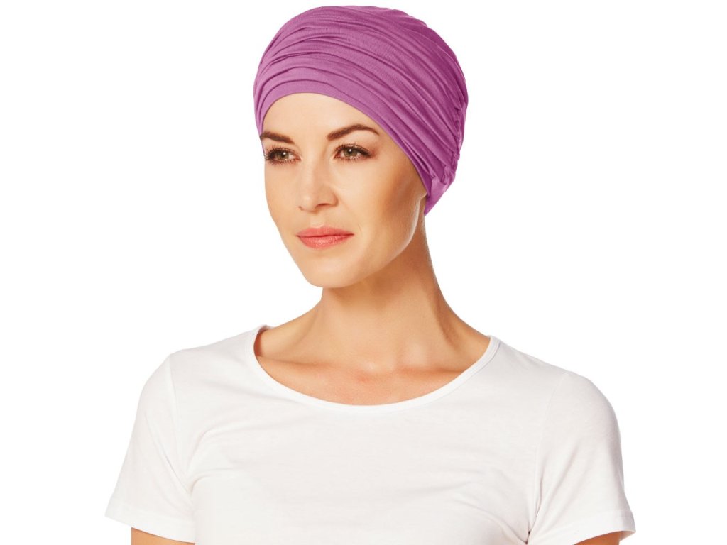 Šátek - Turban Karma - nasazuje se jako čepice, čelenku lze nosit zvlášť nebo vcelku. Obsahuje 1ks turban a 1ks bandáž. Šátek - Turban je navržený a ušitý z přírodního materiálu, velmi pohodlného a luxusně měkkého bambusového vlákna. Šátky jsou na omak měkké a mohou absorbovat a zároveň odvádět až čtyřikrát více vlhkosti než bavlna, aniž by vznikal pocit vlhka. Navíc dobře odolávají bakteriím. Bambusové vlákno má termoregulační vlastnosti a prodyšnost, takže vyrovnává teplo, nebo v teple ochlazuje a chladném počasí ohřívá.