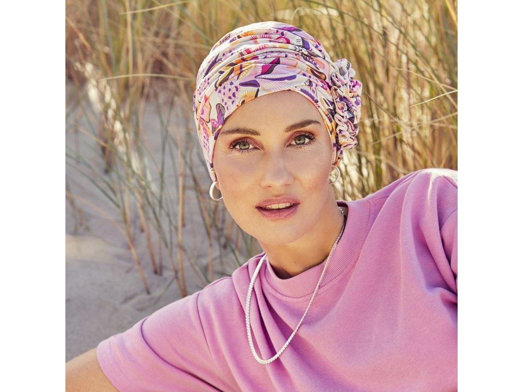 Šátek - Turban Lotus - nasazuje se jako čepice, nemusíte tedy nijak vázat.