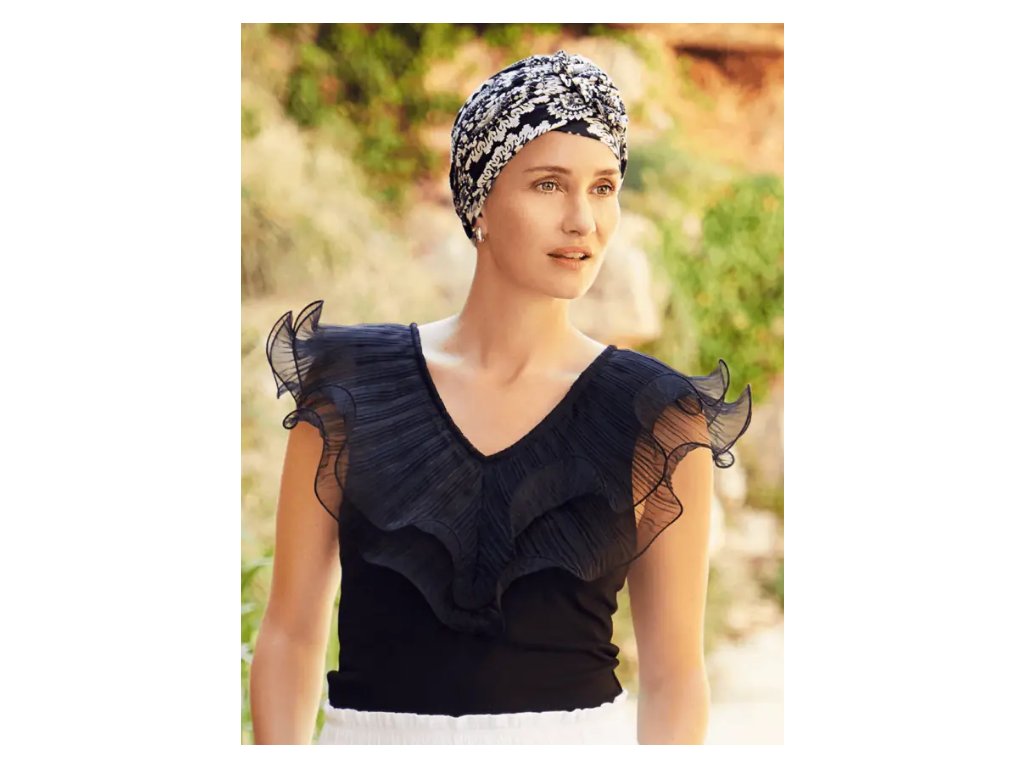 Šátek - Turban Lotus - nasazuje se jako čepice, nemusíte nic vázat.